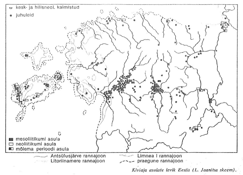 “Esimesed Eesti asukad eelistasid oma kodud rajada veekogude kallastele ja mineraalmaale, vältides suuri sooalasid” (Hiiemäe, 1988: 221). Samas läbisid jõed, kui head liikumisteed, just suuri sooalasid, aga kuna jõgede kaldad olid siis märksa kõrgemad, oli inimeste eluasemeks paljudel juhtudel ikkagi mineraalmaa. Seetõttu tekib kiviaegsete asulate paiknemist vaadeldes tunne (vt Jaanitsa skeem, 1992: 43), et muistsed asulad paiknesid soos. Tegelikult on aastasadade jooksul toimunud jätkuv soostumine ning muistsed mineraalmaa ja lammialad on kaetud nüüdseks turbalasundiga.