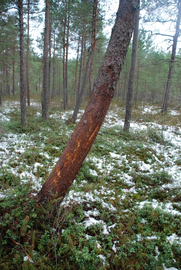 Karu märgid männil Kuresoos Soomaal
