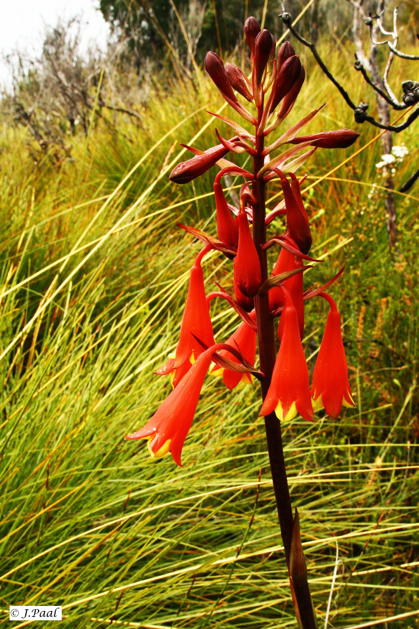 Blandfordia punicea, Buttongrass moorland